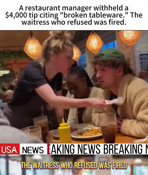 A dispute over a $4,000 tip has sparked outrage after a restaurant waitress was reportedly fired for refusing to accept her manager’s decision to withhold the gratuity.