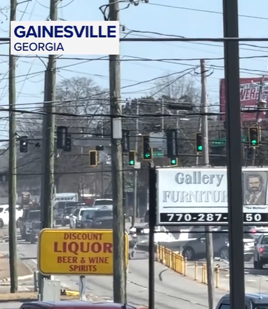 A quiet day in Gainesville, Georgia turned into a moment of chaos when a small aircraft crashed directly onto a busy city street. The incident unfolded in broad daylight, surrounded by traffic, storefronts, and power lines—an area no one would ever expect to see a plane come down.